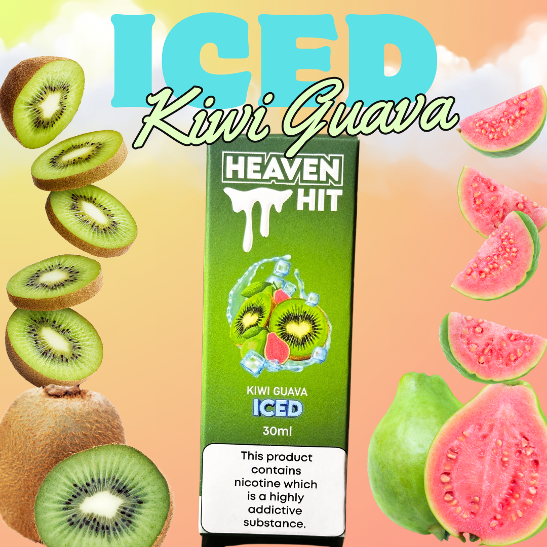 Indulge in a refreshing sensation with Heaven Hit Iced Kiwi Guava 30ml vape juice, expertly crafted to deliver the exhilarating fusion of succulent kiwi and luscious guava, topped with a cool, frosted finish. Perfect for those seeking a boldly fruity flavor with an icy blast, this premium e-liquid comes in a convenient 30ml bottle and features a vibrant, clear coloration. Elevate your vaping experience with each smooth inhale and enjoy the perfect balance of sweet, tart, and briskly chilled notes. Ideal for both new and seasoned vapers looking for a tantalizing tropical escape.